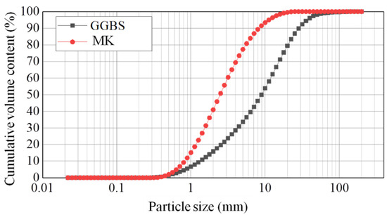 Granularity distribution in the compositions of MK and GGBS.