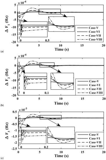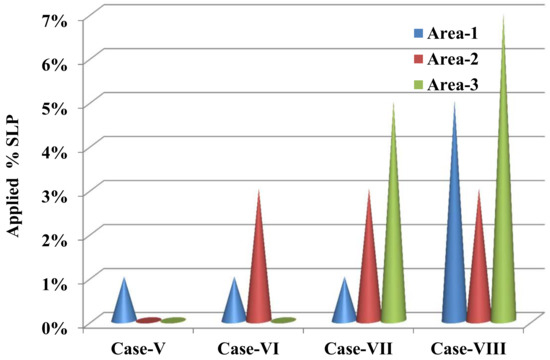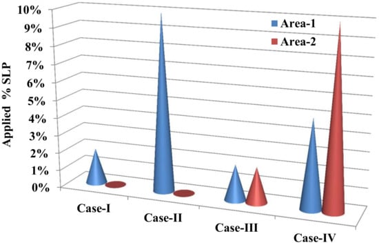 The controller is tested under various operating conditions presented by various cases. The applied % SLP for each area in each test case for the two-area multi-source system is presented in Figure 7.