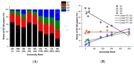 3.1. The Share of Q1–Q4 Papers Is Specific to University Rank Position