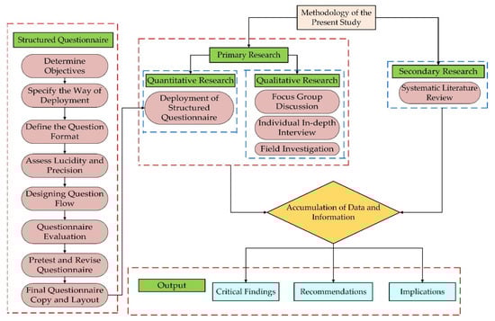 Secondary research is essential to this study’s methodology and is a prerequisite step to collecting primary data [55]. This research has extensively explored the relevant literature to examine and evaluate the current landscape of available information on ELV recycling practices in India and gain insights into general industry trends. Secondary research yielded a robust foundation for this investigation and enabled the development of a comprehensive understanding of India’s ELV recycling system from the circular economy perspective, and aided the research and sample design in this investigation. Secondary research assists in the interpretation of data collected from quantitative as well as qualitative research.