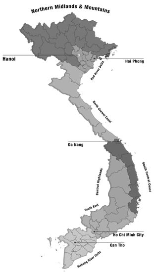 - More than 30% of FDI Is Concentrated in the Red River Delta. Available online: https://congthuong.vn/hon-30-von-fdi-tap-trung-vao-dong-bang-song-hong-164564.html (accessed on 2 August 2022).