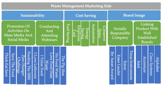 Waste management needs both practitioners and academics to focus on various domains, particularly in health [], construction management [], and urban population handling, as these are the core areas of concern for humanity. Sustainable waste management handles the environment better and helps minimize environmental degradation and contribute to society. The researchers have emphasized technological developments and integration. Therefore, more integrated systems are required to handle environmental risks better []. Thus, the current study reviewed the literature on ten companies that provide waste-management solutions. The research on waste management also highlighted the importance of technical and marketing domains [].