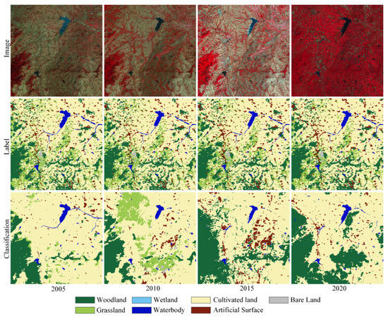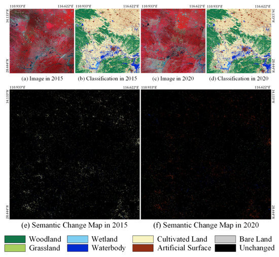 - Extensive experiments on our self-made, large-scale, multi-temporal Landsat dataset achieve state-of-the-art performance. Through our proposed network, multi-temporal landcover change detection and specific change trend analysis were carried out for the large-scale study area from 2005 to 2020.