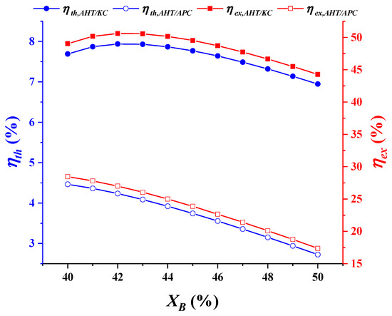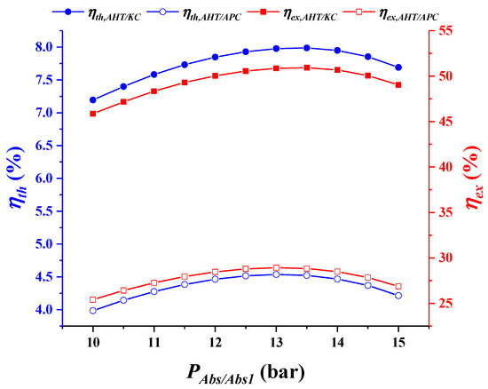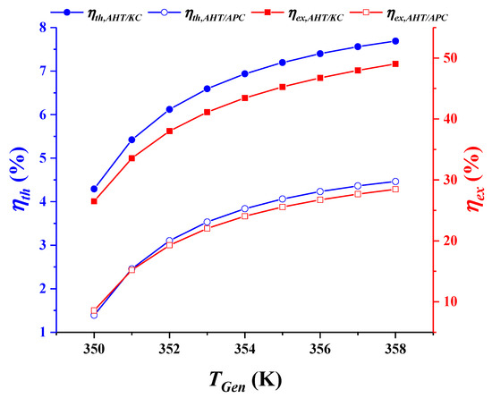 - The maximum exergy efficiency is calculated 49.03% for the AHT/KC cycle.