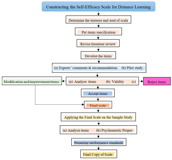 Figure 1 illustrates the procedures for constructing and developing a distance learning self-efficacy scale as follows:
