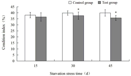 3.1. Effects of Starvation Stress on Condition Index of M. yessoensis
