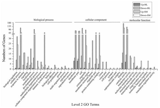 3.5. GO Functional Analysis of DEGs