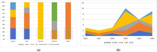 | Fernandes et al., 2019 | [40] | RE and CEB | Portugal | to compare the environmental impact of different earth-based assemblies | cradle-to-gate | A1–A5 | m2 wall | Ecoinvent v3.3 database | Primary data—company and manufacturers | CML, CED | Attributional: ordinary allocation by-products |