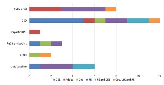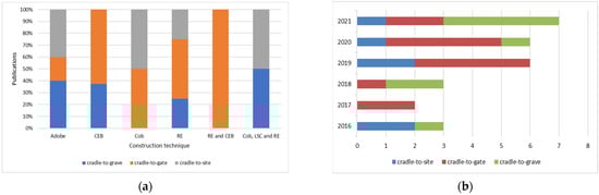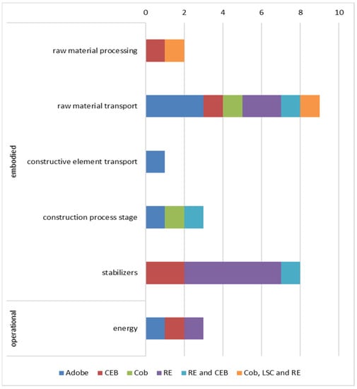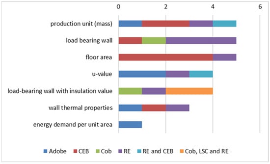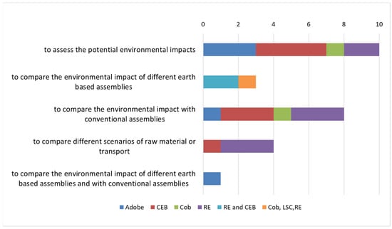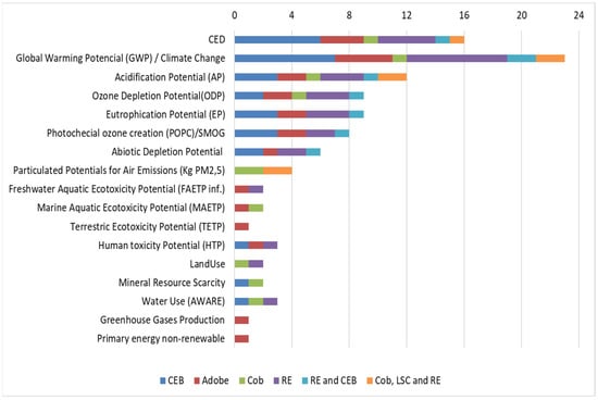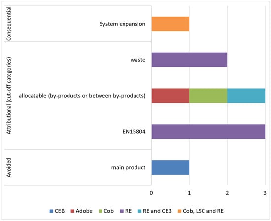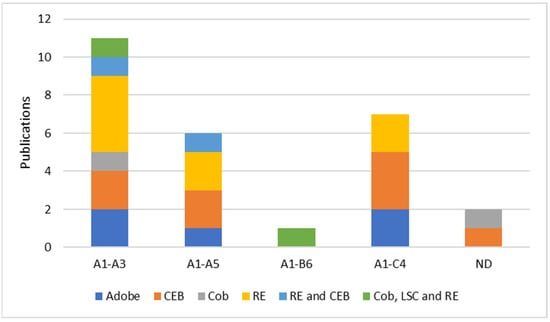 | Ben-Alon et al., 2019b | [49] | Cob, LSC, RE | USA | compare the environmental impact of different earth-based assemblies | cradle-to-site | A1–A3 | m2 wall | US-LCI and Ecoinvent for North America | US-LCI and Ecoinvent for North America | CED—Traci | undeclared |