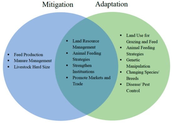 Venn diagram of strategies for mitigation and adaptation in the livestock sector. Reproduced with permission from Zhang et al. [24].