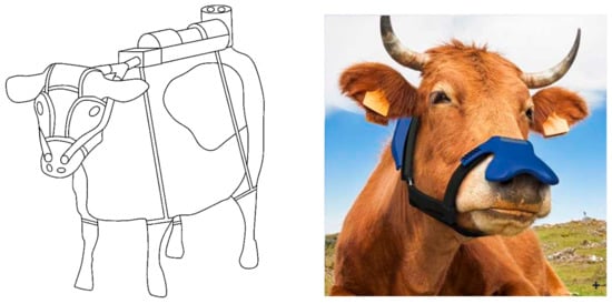 Utilization of ruminant animal methane emissions according to patent# US 6982161. Right: ZELP “Zero emission livestock project”, EU-project from 2019 (ID: 877091) [95]; Exhaled CH4 (90% comes out of the mouth) is catalytically converted into CO2 in a special mask, which is said to come on the market in 2022.