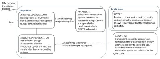 For several years, the Architecture, Engineering and Construction (AEC) domain has been facing a constant push towards improving the energy efficiency of the existing residential building stock worldwide. For instance, in recent years, the EU has invested a lot of effort, both political as well as economical, in implementing policies that will substantially decrease greenhouse gas emissions as of “80–95% by 2050 compared to 1990”, as per the EU Directive 2012/27/EU [1]. The Directive 2018/2022 of the European Parliament amending the Directive 2012/27/EU in its premise states that the number of households that have been converted into energy efficient buildings is still very limited [2]. For this reason, the current renovation rate of existing buildings must increase from 1–2% to 2–3% per year until 2030 [3,4]. Improving the energy efficiency of buildings has been recognized by the EU as a driving force for alleviating the fuel scarcity issue and also for increasing the employment rate continent-wide [4]. It has been assessed that buildings are responsible for about 40–43% of energy consumption as well as 36% of overall CO2 emissions [5]. As a consequence, an upturn in energy efficiency by at least 33% must be met by 2030, according to the EU Directive 2018/2002/EU [2]. The urgency of such directives and the policies contained therein have been confirmed and reinforced by the recent world-wide energy crisis [6]. Since the end of 2021, EU observers and columnists have confirmed that an acceleration in the implementation of the Renovation Wave initiative would be the best answer to the recent surge in energy prices [7]. Evidence shows that several factors may hamper the realization of the desired renovation rate goal. On one hand, renovation design is more challenging compared to designing a new construction, since it requires considerable efforts in surveying and collecting information regarding the status of the existing building. On the other hand, renovation activities are carried out by a highly fragmented supply chain in the construction industry [4]. Furthermore, close collaboration among several experts is required while assessing the constructability and feasibility of any technical solution design in response to requests by the owner (e.g., a design layout may be constrained by the existing building structure, or dedicated interfaces must be defined between current and renovated technical sub-systems).