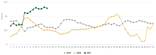 Empty containers are seriously excessive in some ports. According to the CAx (Container Availability Index) value of 20DC dry containers provided by Container Xchange, the CAx value of Shanghai in week 14 of 2021 was 0.64 [14], indicating that the number of empty containers is excessive, as is shown in Figure 1: