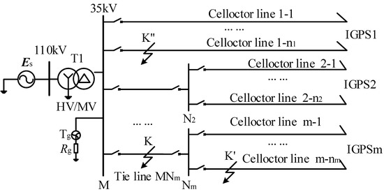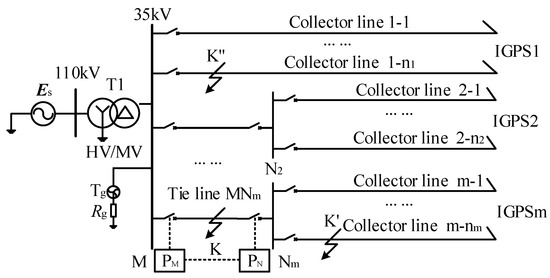 As shown in Figure 1, a collection system of large-scale IGPS contains several medium-sized IGPS, which can be divided into two types according to topological structure. The first type is IGPS1 with collector lines directly connected to the booster station, and the second is called IGPS2-IGPSm, connecting to the booster station through a 35 kV tie line.