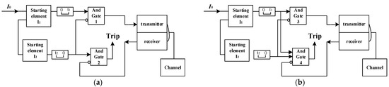Components and operation logic of interlocking zero-sequence high frequency protection: (a) the system side; (b) photovoltaic (pv) side.