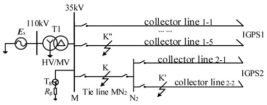 In order to make fault analysis universal, three fault points K͵ K’ and K’’ are added to the centralized IGPS general topology, as shown in Figure 1, located on the tie line and the two collector lines, respectively.