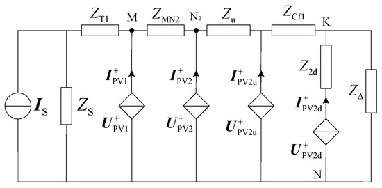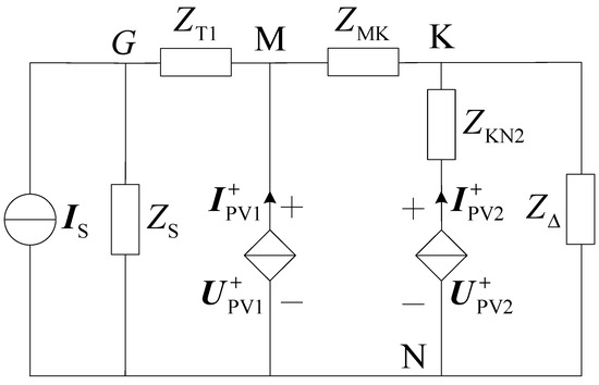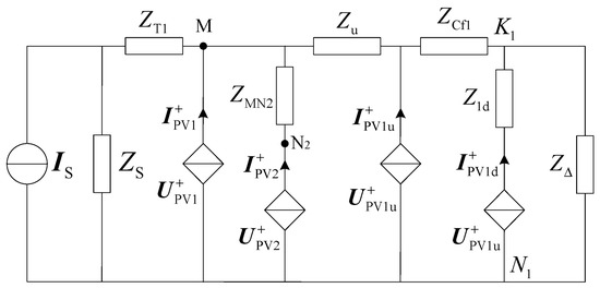 In Figure 9, indicates the positive-sequence impedance between the downstream PV power source of the fault point and the fault point. The zero-sequence equivalent impedance of the short-circuit point in Figure 9 can be obtained from Equation (13), where m = 2.