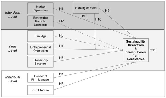 Figure 1 illustrates how we approached this analysis of heterogeneity in the power industry. We selected eight sets of hypotheses across all three of Oliver’s levels in order to build a model of sustainability orientation. This is a classic example of a moderator model where predictors, moderators, and predictors crossed with moderators, all comprise discrete hypotheses [36].
