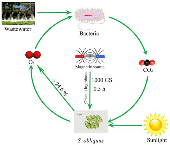Static magnetic field (SMF) applied to Scenedesmus obliquus cultivated in municipal wastewater for oxygen production. Source: [4].
