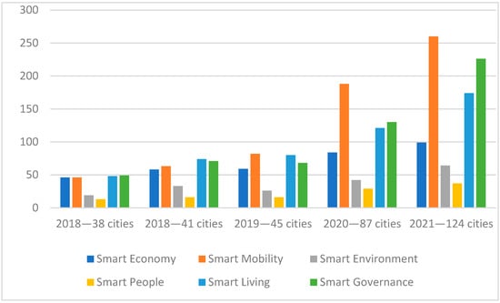 45] pointed out. These fundamental elements affecting cities in the European region were adopted by the Commission in 2011 and confirmed by the European Parliament in its 2014 Mapping Smart City Report [