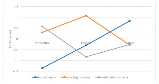 Variation of mean factor scores of motivation dimensions across the three tourist segments.