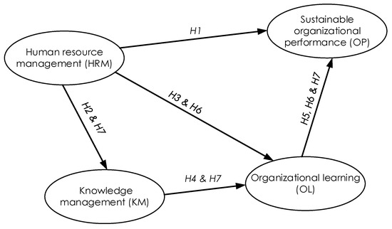 As for the role of KM as a mediating variable between HRM and OP, there are several studies, such as the articles by Kokkaew et al. [19], Farooq et al. [56], Obeidat et al. [57], and Iqbal et al. [58]. Currently, researchers are also interested in the mediating role of organizational learning in the casual link between HRM and OP. For instance, Zhai et al. [22] confirmed the mediating role of organizational learning (OL) between the relationship of HRM and performance in construction firms in China. In addition, researchers such as Gold et al. [59] and Abbas et al. [21] found that OL acted as a mediating mechanism behind the link between KM and OP. There are several recent research articles investingating the mediating roles of KM or OL as summarized in Table 1. However, despite some of the research investigating the underlying mechanisms behide the link between HRM and OP through KM or OL, none has investigated the multiple mediating roles of KM and OL (see Table 1).