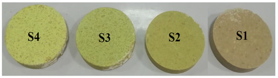The polyester resin was gradually mixed with PbCO3 and stirred well, making sure that the mixture is free of agglomeration, then the percentages to be added of waste marble and WO3 nanoparticles were added, and the hardener was also added at 0.5% with an amount of polyester added. The compound was stirred well, poured into molds and left for 24 h in the air until completely dry and hardened. Figure 2 shows the prepared samples used to measure the attenuation coefficients. The chemical compositions, densities, and codes of the prepared marbles were listed in Table 2. The density of samples was measured practically using the mass per volume law, where the mass was measured using 0.0001 digital balance and the volume was measured by () formula, where r and have represented the radius and the thickness of the measured samples.