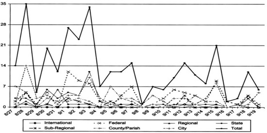 Figure 1 shows the chaotic pattern of partners’ rushing into the affected area of Hurricane Katrina. This increases the load on the affected populations, local authorities, and coordination structures for information or services. It also increases the costs due to replicated offices and overheads, produces a counterproductive duplication and confusion of efforts, and leads to competition between agencies for donations, facilities, and publicity.