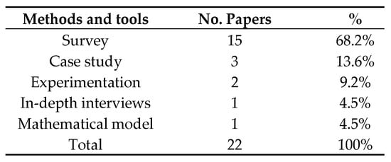 Empirical research distribution per methods and tools used. Source: Authors’ own elaboration.