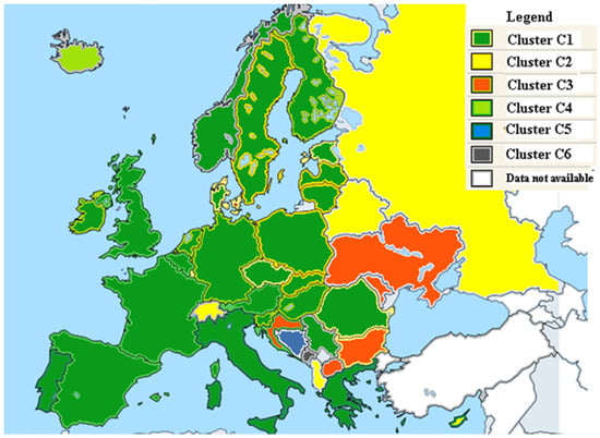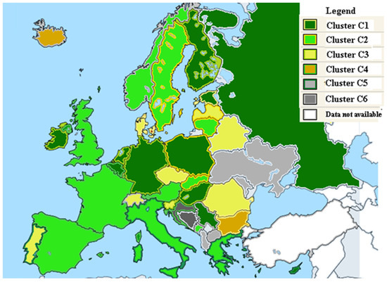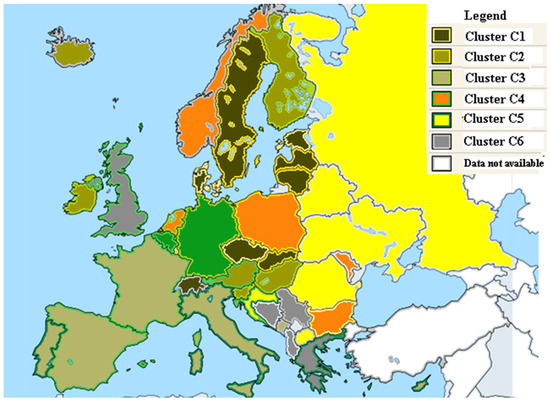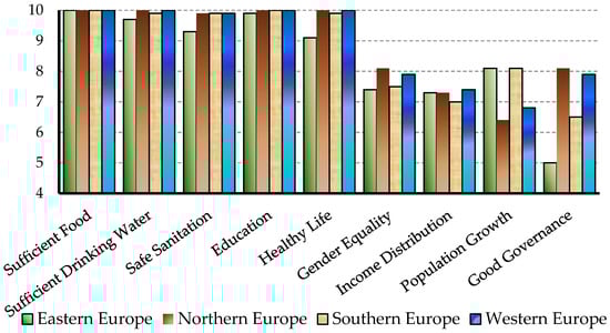Regarding the organization of the databases of the United Nations (UN), administered by the United Nations Statistics Division (UNSD), the statistical data series are structured in four regions: Eastern Europe, Northern Europe, Southern Europe and West Europe [69]. The values of the social sustainability indices (SSI) were determined according to these regions.