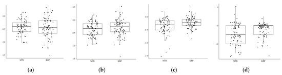 Comparison of multiple boxplots for the transformation of (a) livelihoods assets, (b) objective QoL, (c) subjective QoL and (d) overall QoL in MTB and KBP.