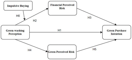 In addition to financial risks, there are social risks, psychological risks, performance risks, and physical risks. Mohr [] proposes green perceived risk in addition to physical risk, which further expands the study in specific scenarios. Chen and Chang [] define green perceived risk as “the expectation of negative environmental consequences associated with purchase behavior” and confirm these possibilities with significant loading scores. They note that it is an expectation of negative outcomes associated with environmental outcomes. The emergence of greenwashing behavior may trigger consumers’ uncertainty about the green performance of companies. Therefore, we propose the following hypothesis.
