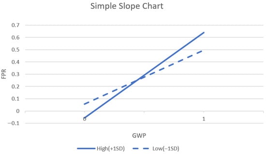 To test the moderating role of impulsive buying to consumption in perceptions of greenwashing and financial risk, interaction terms were first created for the independent variable greenwashing perceptions and the moderating variable impulsive buying. The results show that the coefficient of the interaction between greenwashing perception and financial perceived risk is positive and statistically significant (.127, p < 0.01). Therefore, Hypothesis 6 is supported. To further clarify the significance of the moderating effect, this study uses the simple slope test to analyze the predictive effect of greenwashing perception on financial perceived risk at different levels of impulsive buying. The regression lines that represent the association between greenwashing perception and financial perceived risk moderated by impulsive buying are created by using the standardized scores of the variables. Figure 3 demonstrates that the moderating effect of greenwashing perception on impulse-prone consumers is greater than that on non-impulse-prone consumers. While increases in financial perceived risk are associated with increases in greenwashing perception, the rate of change is higher for impulse-prone consumers than for non-impulse-prone consumers. Therefore, impulsive spending tendency reinforces the positive effect of greenwashing perception on financial perceived risk.