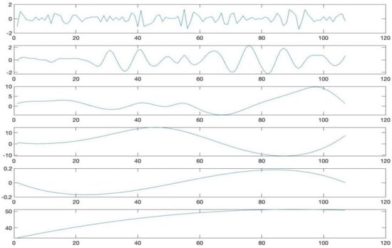 The ensemble empirical mode decomposition (EEMD) is a method proposed by Wu and Huang [19] to solve the shortcomings of empirical mode decomposition (EMD). Both the EMD and EEMD methods are used in nonlinear and non-stationary time series. EEMD solves modal aliasing by adding white noise, which can be understood as the performance of regularization. EEMD mixes the original real-time series data and noise to formulate a new, closer to real-time series data, and adds some missing scales to help extract the real signal from the data.