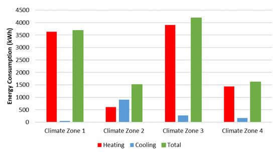 Total energy consumption for each climate zone.