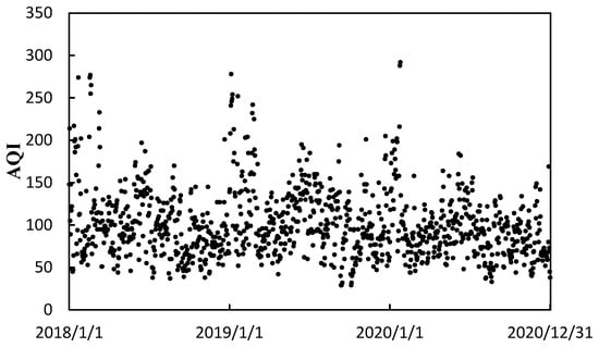 Timeseries of ambient AQI in Jincheng from 2018 to 2020.