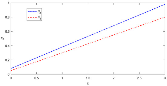 Assuming that the retail price of the product , the retailer trade credit rate and the risk-free rate , the mechanism of the impact of the marginal cost of production of the supplier’s product on the contagion intensity of supply chain credit default risk is shown in Figure 2.