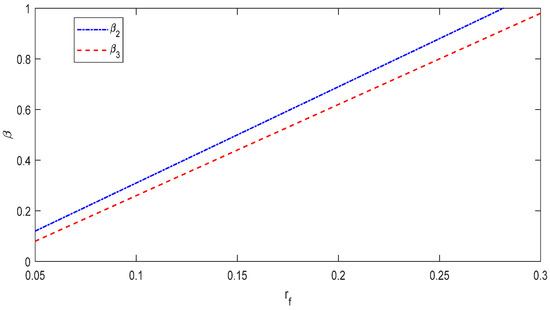 Assume that the marginal cost of production per unit of the supplier’s product , the retail price of the product and the retailer’s trade credit rate . Therefore, the mechanism of the bank’s risk-free rate on the contagion intensity of the supply chain credit default risk is shown in Figure 4.