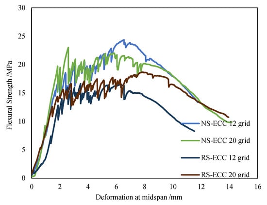 - The compressive and flexural strengths of ECC were over 50 and 20 MPa. The addition of RS did not cause a significant loss of compressive and flexural strength, compared with that of ECC with NS.