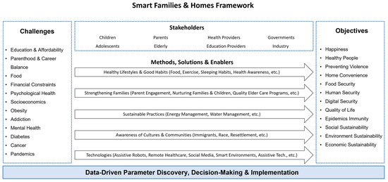 Advancements in information and communication technologies (ICTs) and the consequent innovations have profoundly changed the lives of people in recent years, giving rise to smart environments, cities, and societies [1,2,3,4]. Technologies such as artificial intelligence (AI) and the Internet of Things (IoT) enhance quality of life for us by monitoring our environments and making decisions to achieve desirable outcomes. As homes are the building block of cities and societies, smart homes are critical to establishing smart living and are expected to play a key role in enabling smart cities and societies.