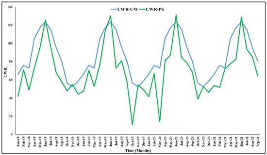 CWR estimation for Al Majmaah using CWR-PS and CWR-CW from January 2018–October 2021.