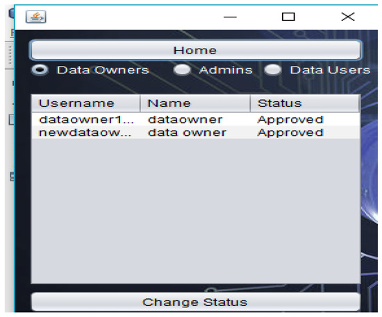 In this research work, a special version of IBBE was used which is based upon the techniques proposed by [27,28,29,30]. The 256-bit secret key and the value of N are encrypted using a group key which is extracted from the public keys, i.e., the identities of all the users who are allowed to access a particular file. Instead of broadcasting this key to the users, the key is saved on the security framework’s storage space and the users are instead provided with a group key.