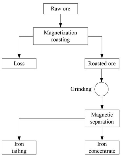 - Yu, J.; Han, Y.; Li, Y.; Gao, P. Recent advances in magnetization roasting of refractory iron ores: A technological review in the past decade. Miner. Process. Extr. Metall. Rev. 2020, 41, 349–359. [Google Scholar] [CrossRef]