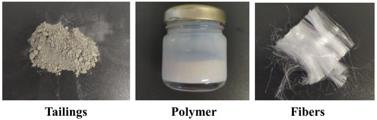 The materials used in this research were gold ore tailings, polypropylene fibers, and polymer solution, as in Figure 1. The gold ore tailing was extracted from the Morro do Ouro deposit in Minas Gerais State, Brazil.
