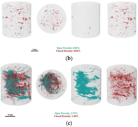 X-ray micro-tomography is a powerful microstructural analysis technique since it is non-invasive, non-destructive, and generates high-resolution images. This technique has been used for many years, especially in research in medicine and geology [36,37,38]. The numerous captured images are reconstructed and transformed into a three-dimensional model, allowing a qualitative visual analysis and determining structural properties such as porosity. Thus, the μCT technique is a valuable option for evaluating the structure of composites with tailings [39].