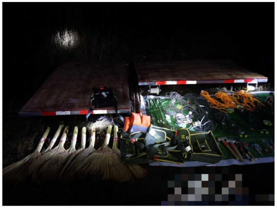 The railway works datasets on the network are limited. This paper attains a homemade dataset of construction tools based on data obtained from a railway system, with a total of 351 images. The LabelImage tool is used to construct labels, including cart, generator, broom, electric drill, cable, water pipe, woven bag, toolkit, bucket, blower, tape measure, shovel, sand bucket, electric sander, plastic bucket, cement bucket. The 16 most commonly used tools were selected as detection objects. Since the existing datasets are all from actual scenarios and the data scenarios are complex and diverse, there is no need to expand the datasets. We randomly divided the dataset into a training set and a test set at a ratio of 9:1 and then divided 10% of the training set into a validation set in the same manner.
