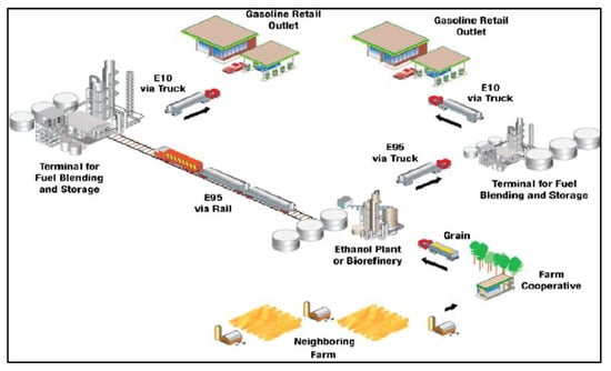 Biofuel supply chain structure (reprinted from [41], with permission from Elsevier).