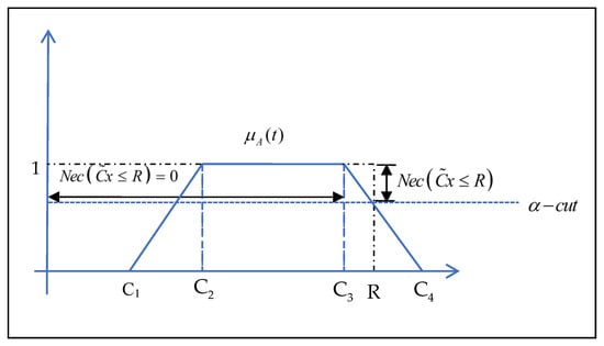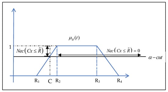 The necessity measures for the ranges of and are depicted and represented in Figure 2 and Figure 3 [40], respectively. Meanwhile, the necessity measurement equations are represented in Equations (22)–(25).