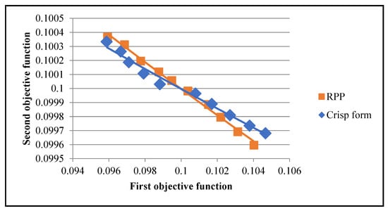 Pareto optimal points of RPP versus the crisp form of the proposed model.