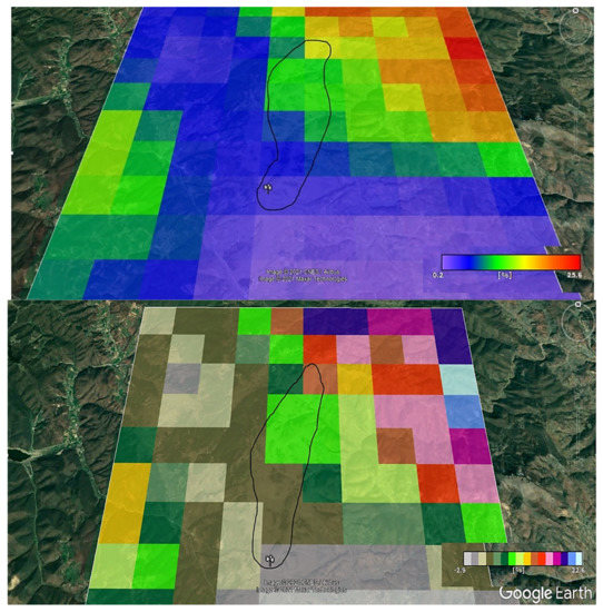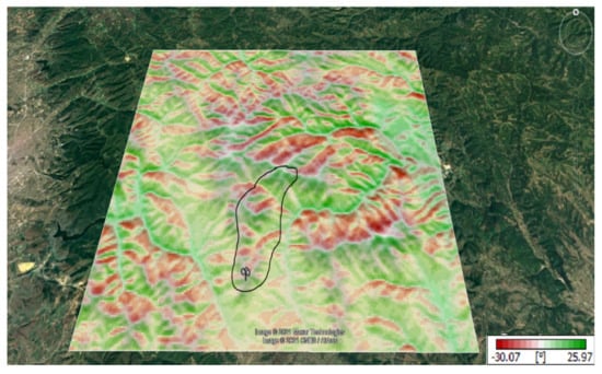 In addition, terrain inclination is a very important element. This is related to the fact that this is mountainous terrain, as shown in Figure 7. The slope of the terrain for Koznica can be seen to remain almost the same at the highest points. Figure 7 shows that in the lowlands along the terrain, the value of the terrain inclination is almost as much, 25.97 degrees (positive value).